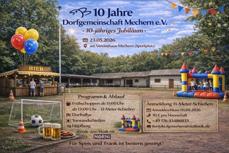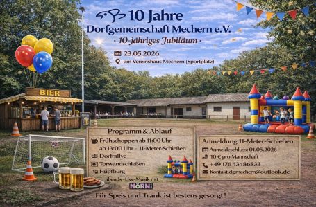 Zehn Jahre Dorfgemeinschaft Mechern e.V. – zehn Jahre voller Engagement, Zusammenhalt und unvergesslicher Momente. Was einst aus einer Idee entstand, ist heute ein fester Bestandteil unseres Dorflebens geworden.